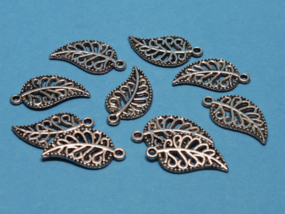 Blatt, filigran, ca. 19 x 10 mm, altsilberfarbe, 10 Stück