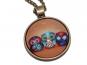 Drei niedliche Eulen bevölkern diesen Cabochon. Der bronzefarbene Cabochon ist ca. 25 mm groß,  die Kettenlänge beträgt ca. 46 cm.
