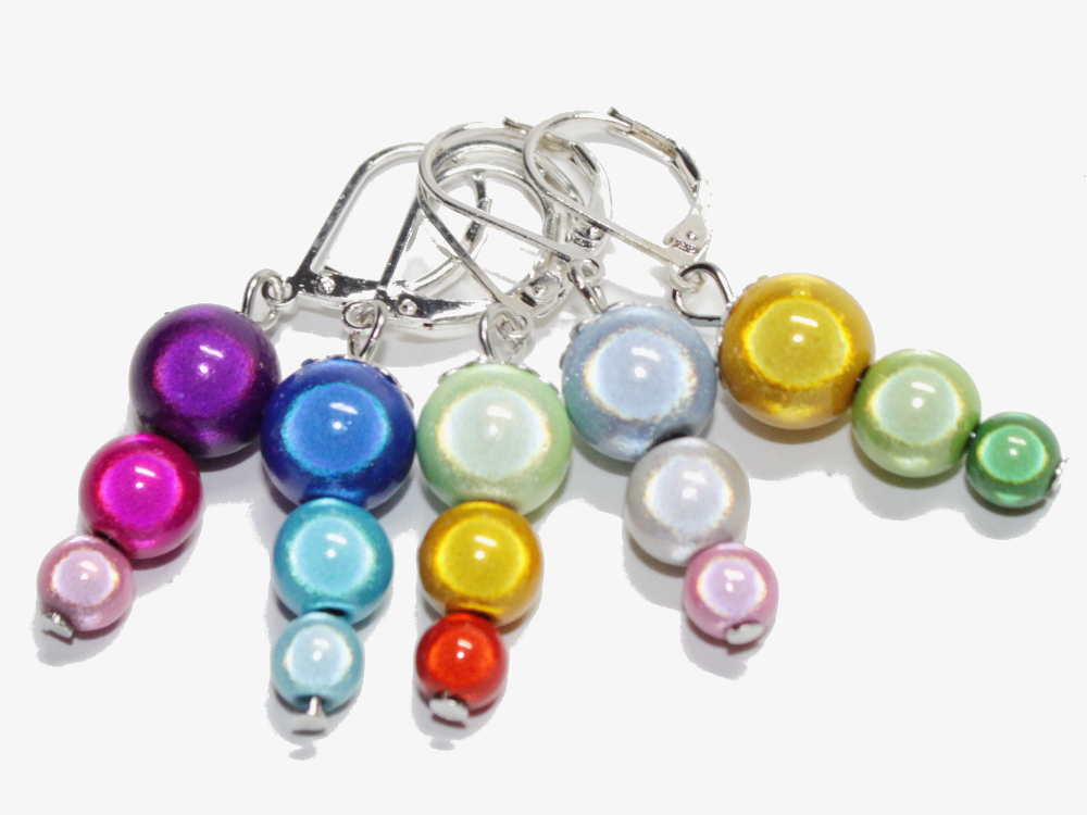 Ein Set mit fünf Maschenmarkierern "Einhörnchen". Sie werden aus Miracle Beads hergestellt. Dadurch sind sie sehr leicht.