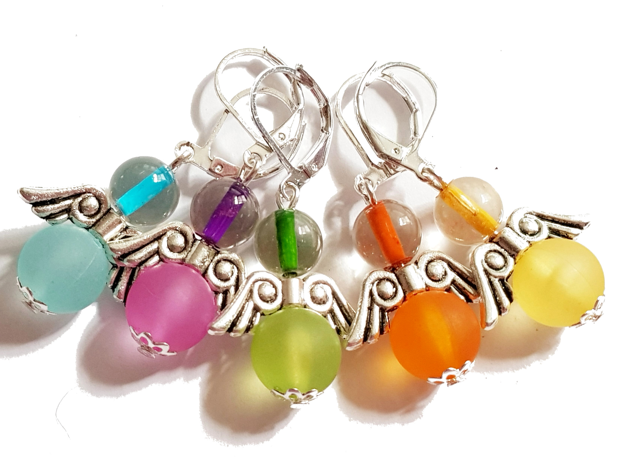 Ein Set mit fünf Maschenmarkierern "Engel". Die Engel werden aus Glas- und Acrylperlen hergestellt.