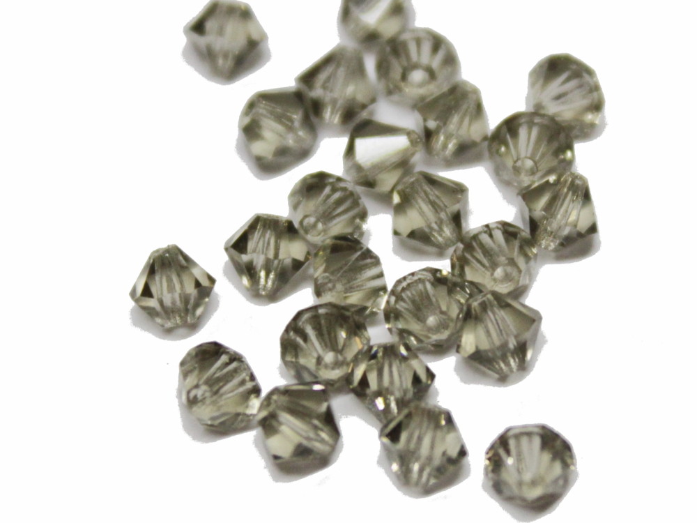 25 böhmische Glasschliffperlen, Bicone, 4 mm, Smoke, Rauchgrau.