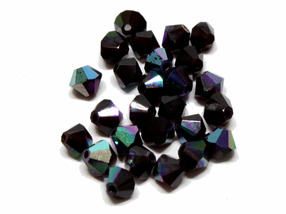 Böhm. Glasschliffperle, Bicone, jet AB, 25 Stück