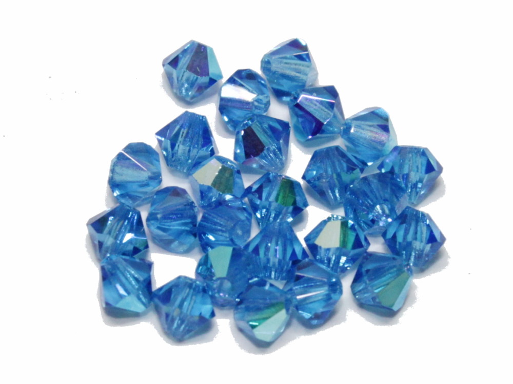 25 böhmische Glasschliffperlen, Bicone, 4 mm,sapphire AB.