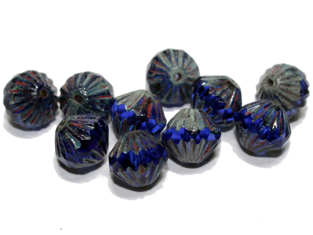 10 böhmische Glasschliffbicone, 9 mm, blue lustered