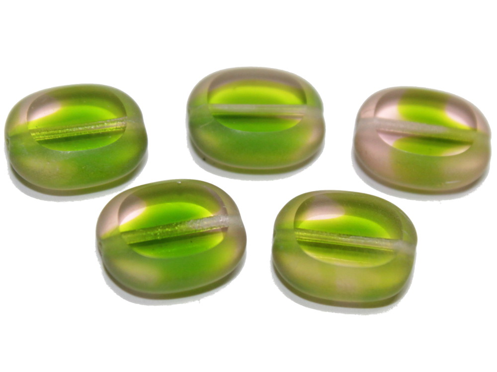 Böhmische Glasperlen Button, green moss, 14x12 mm, 5 Stück