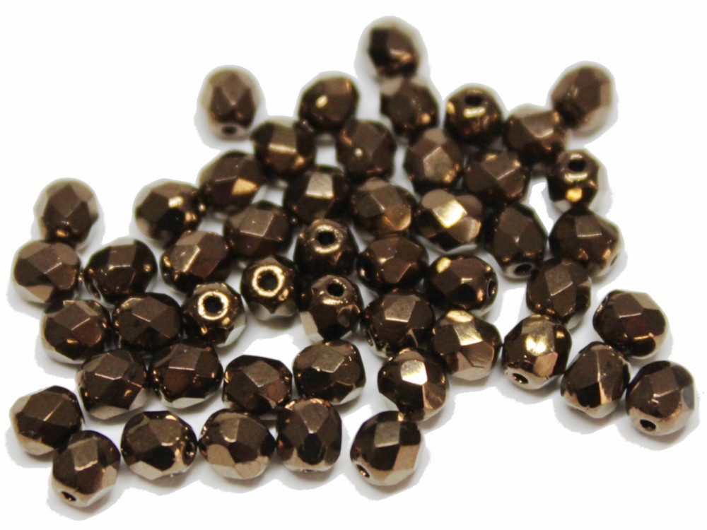 50 böhmische Glasschliffperlen, ca. 4 mm, bronze coated, feuerpoliert.