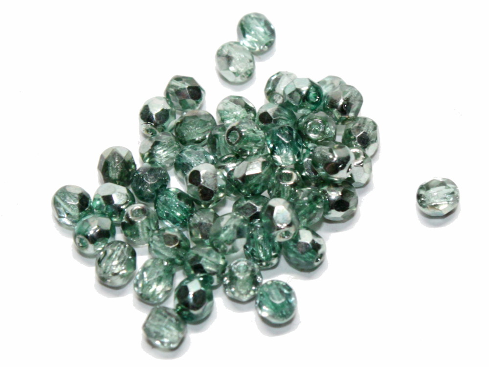 50 böhmische Glasschliffperlen, ca. 4 mm, crystal half silver green.