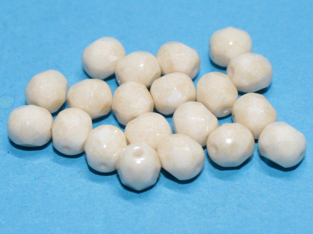 20 Böhmische Glasschliffperlen 6 mm, chalk white opaque full ivory coated
