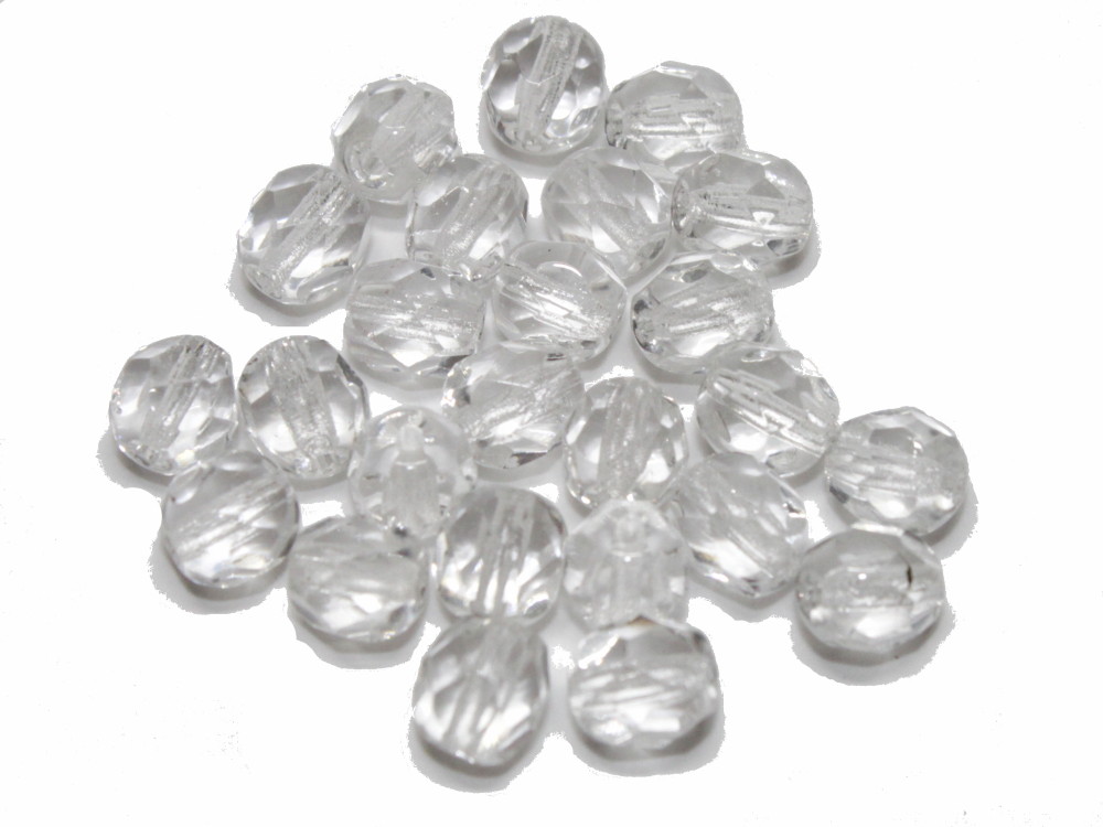 25 Glasschliffperlen, ca 6 mm, kristallklar.
