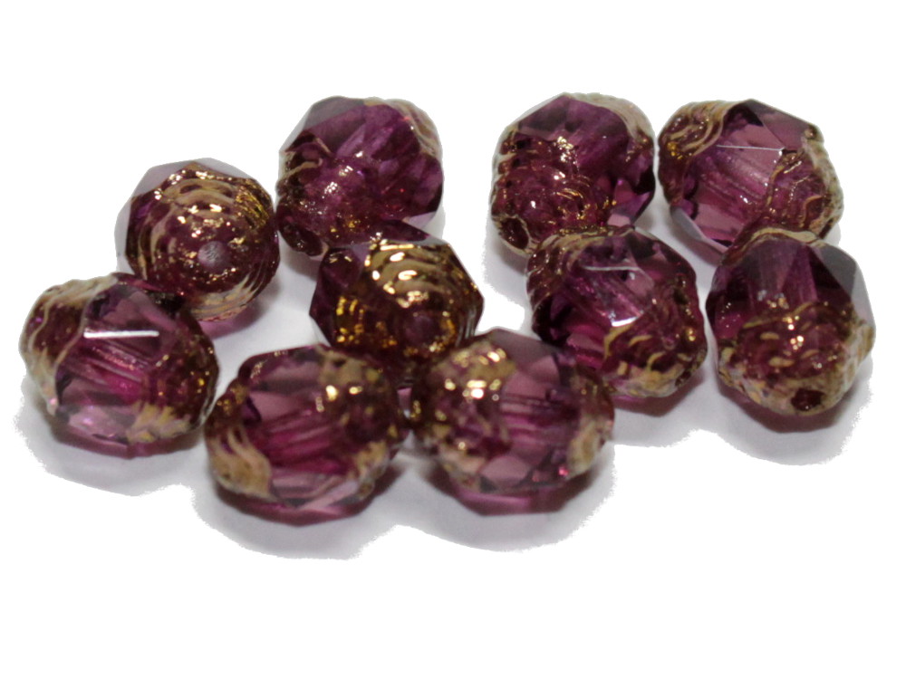 10 böhmische Glasschliffperlen Barock  6x8 mm, amethyst full bronze coated