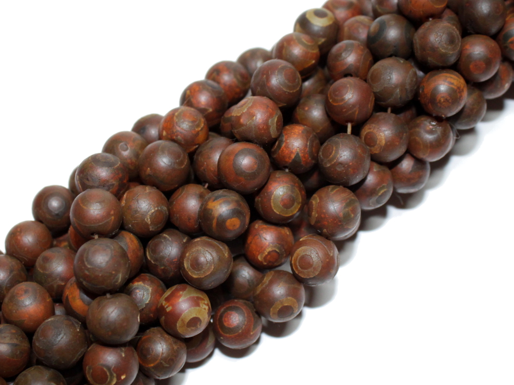Ein Strang Achat Perlen, Kugel, ca. 10 mm, gebrannt, in Dzi Stil bearbeitet. Farbbehandelt.