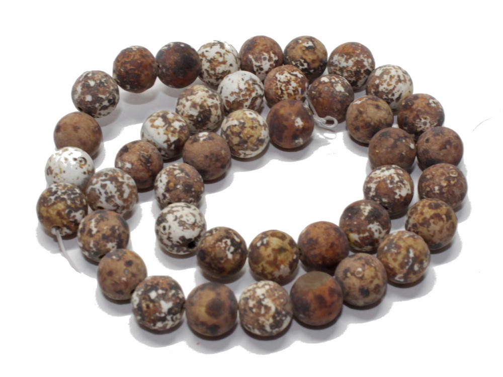 Ein Strang Achat Perlen, Kugel, ca. 10 mm, gebrannt.