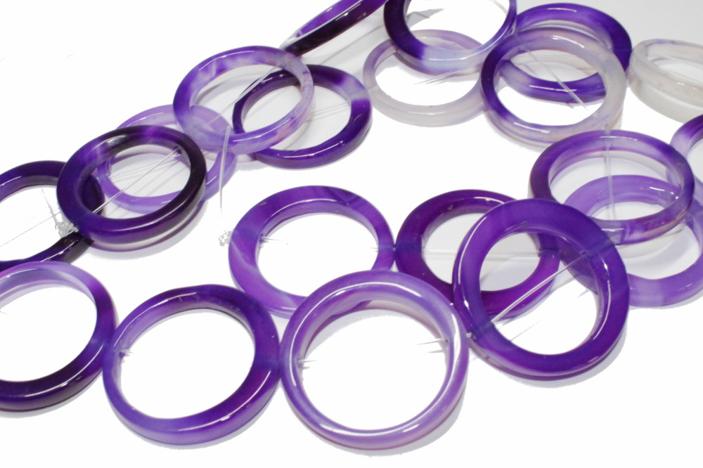 Eine Rahmenperle Achat, lila (farbbeh.), ca. 35 mm Aussendurchmesser, 25 mm Innendurchmesser, Die Rahmen sind nicht gleichmässig dick!