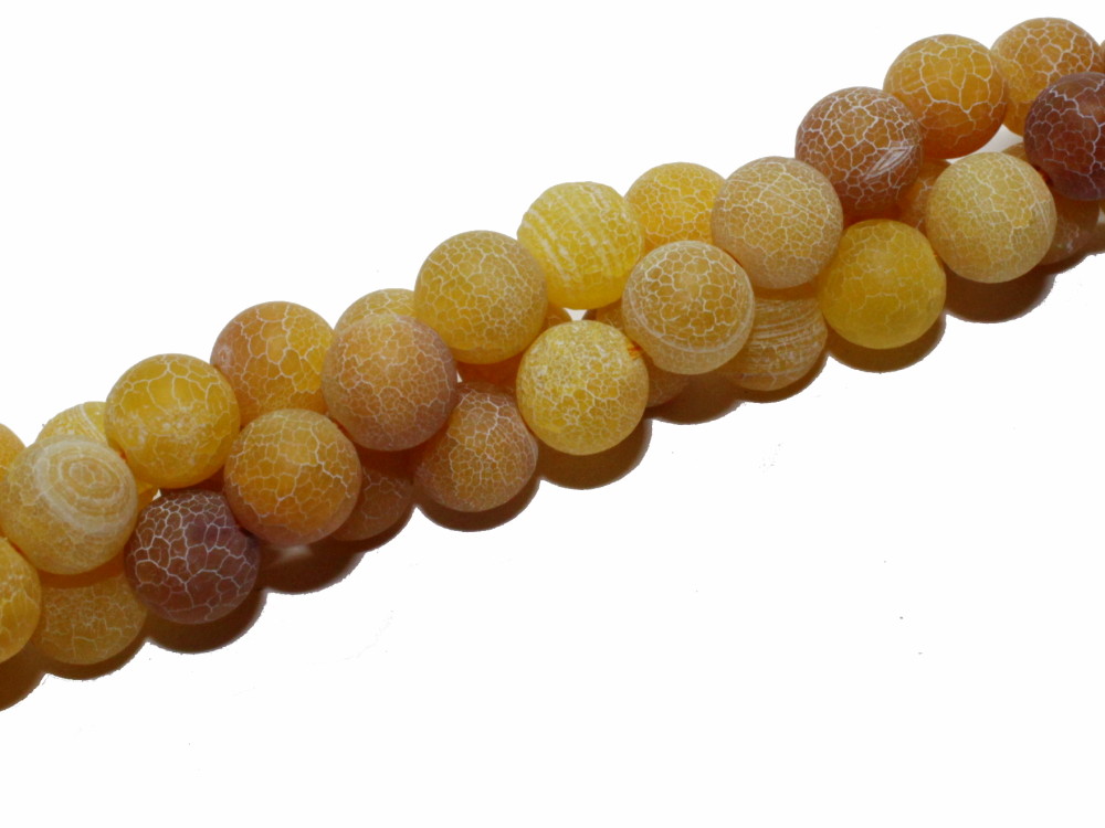 Ein Strang Gelbachat Perlen, Kugel, ca. 10 mm, gecrackt, behandelt.