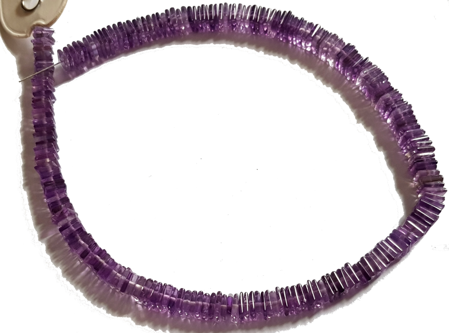 Ein Kurzstrang Amethyst Quadrate mit ca. 5 mm Kantenlänge, mittig gebohrt. Stranglänge ca. 12 cm. Ca. 105 Quadrate je Kurzstrang