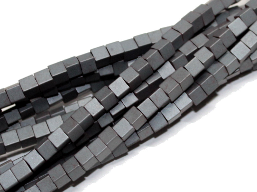 Hämatit Würfel, ca. 4 x 4 mm, matt, Strang