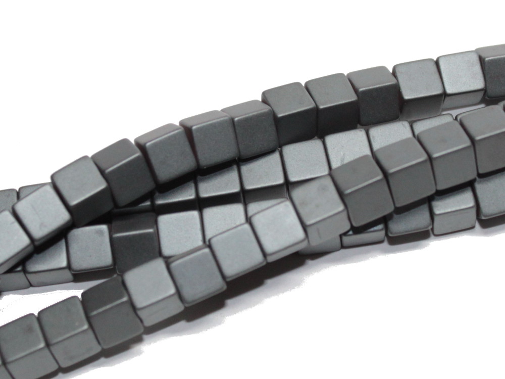 Ein Strang Hämatit Würfel, ca. 6 x 6 mm, matt. Stranglänge ca. 39 cm.