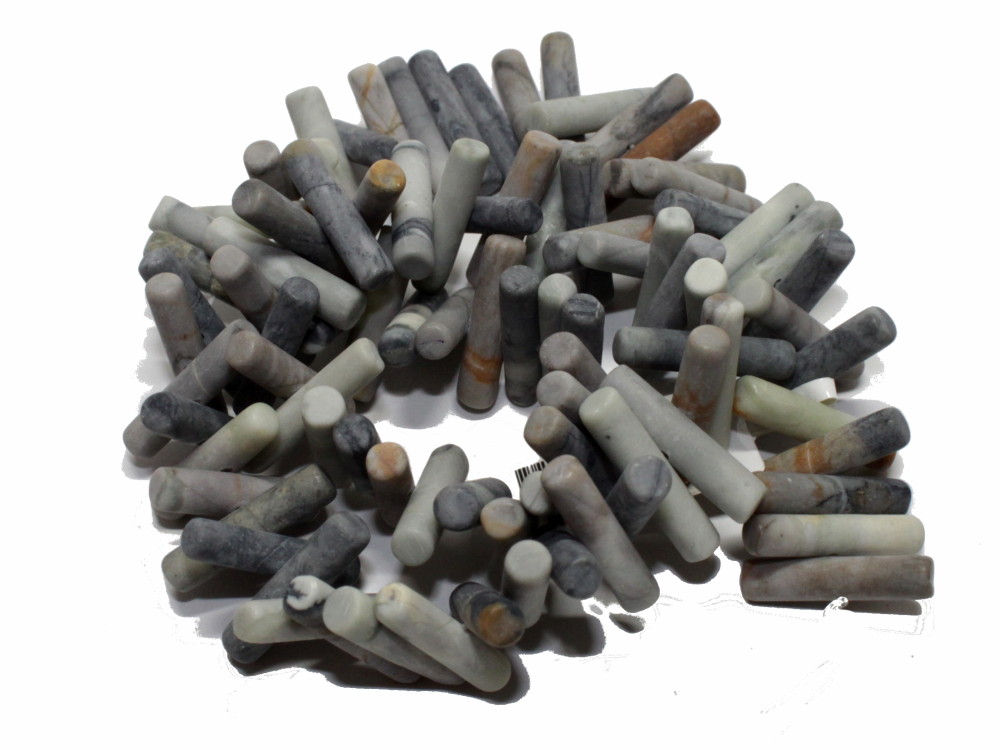 Ein Strang Picasso-Jaspis, Zylinder, ca. 4 x 20 mm, matt.