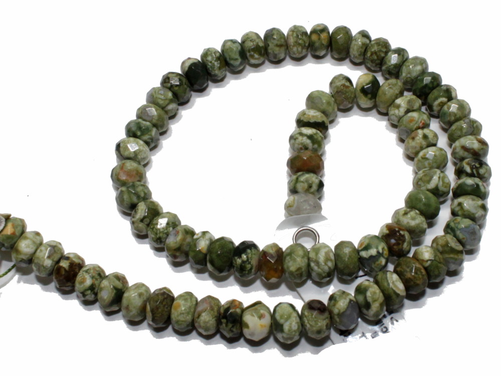 Ein  Srang Rhyolith (Regenwaldjaspis) Rondell, ca. 8 x 5 mm, facettiert