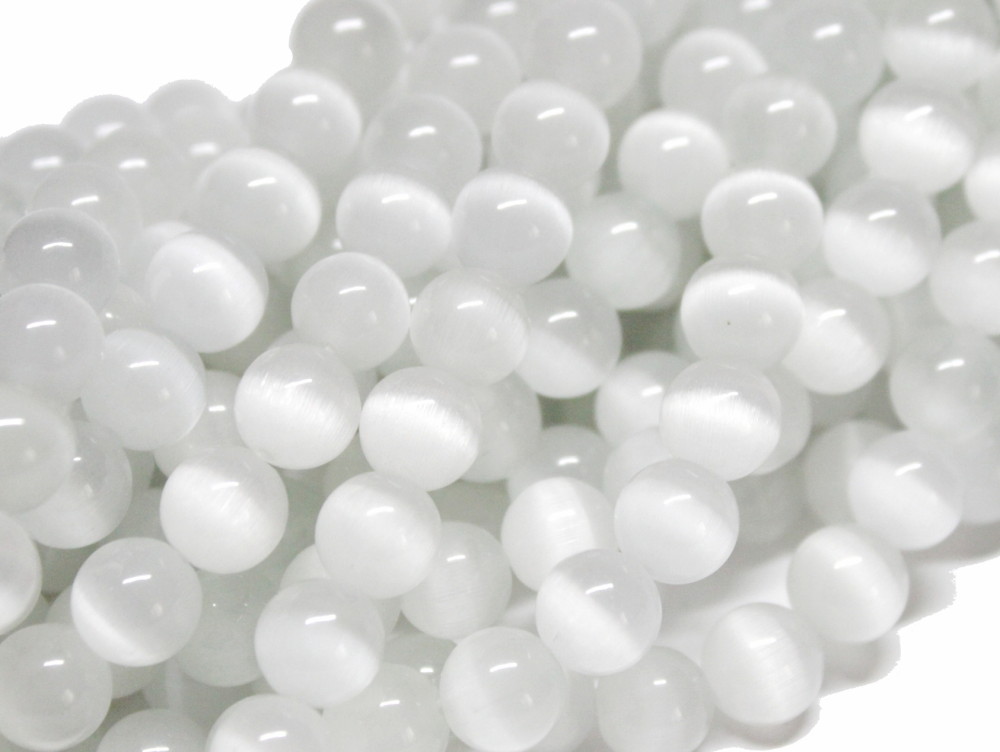 Ein Strang Cat Eye Perlen, ca. 8 mm, weiß.