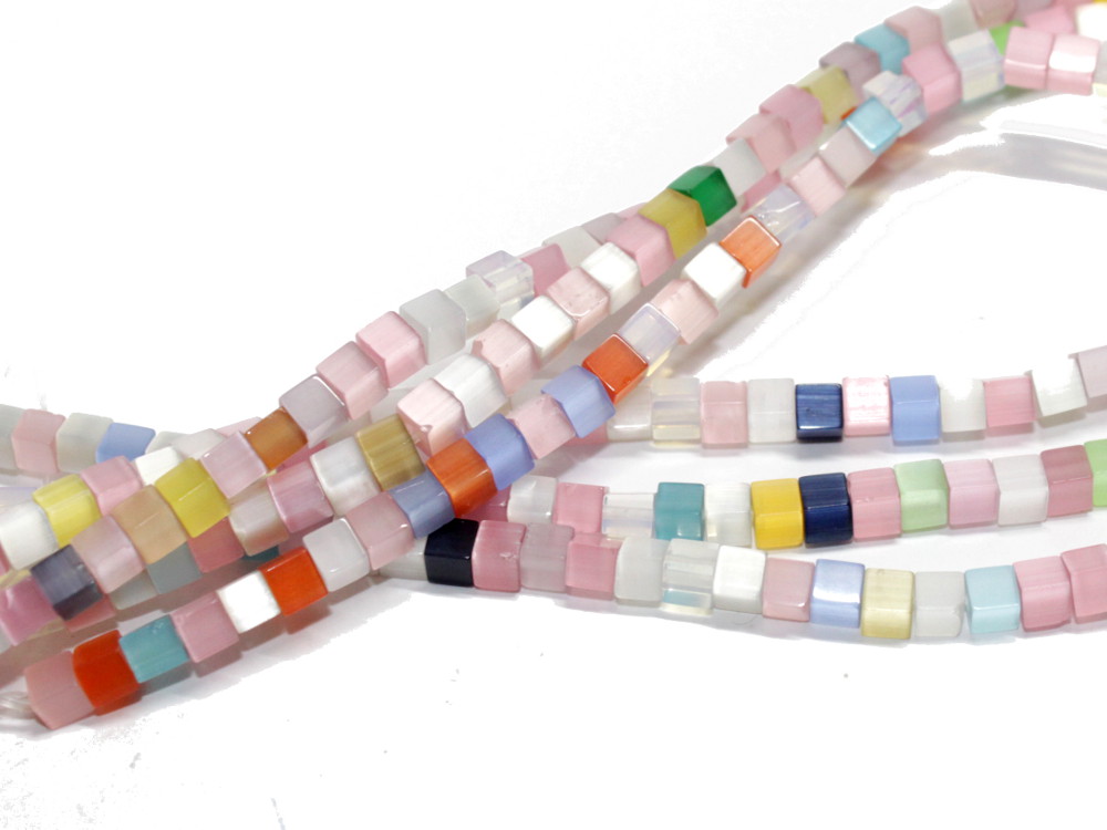 Cat Eye Würfel, ca. 4 mm, Strang, Farbwahl