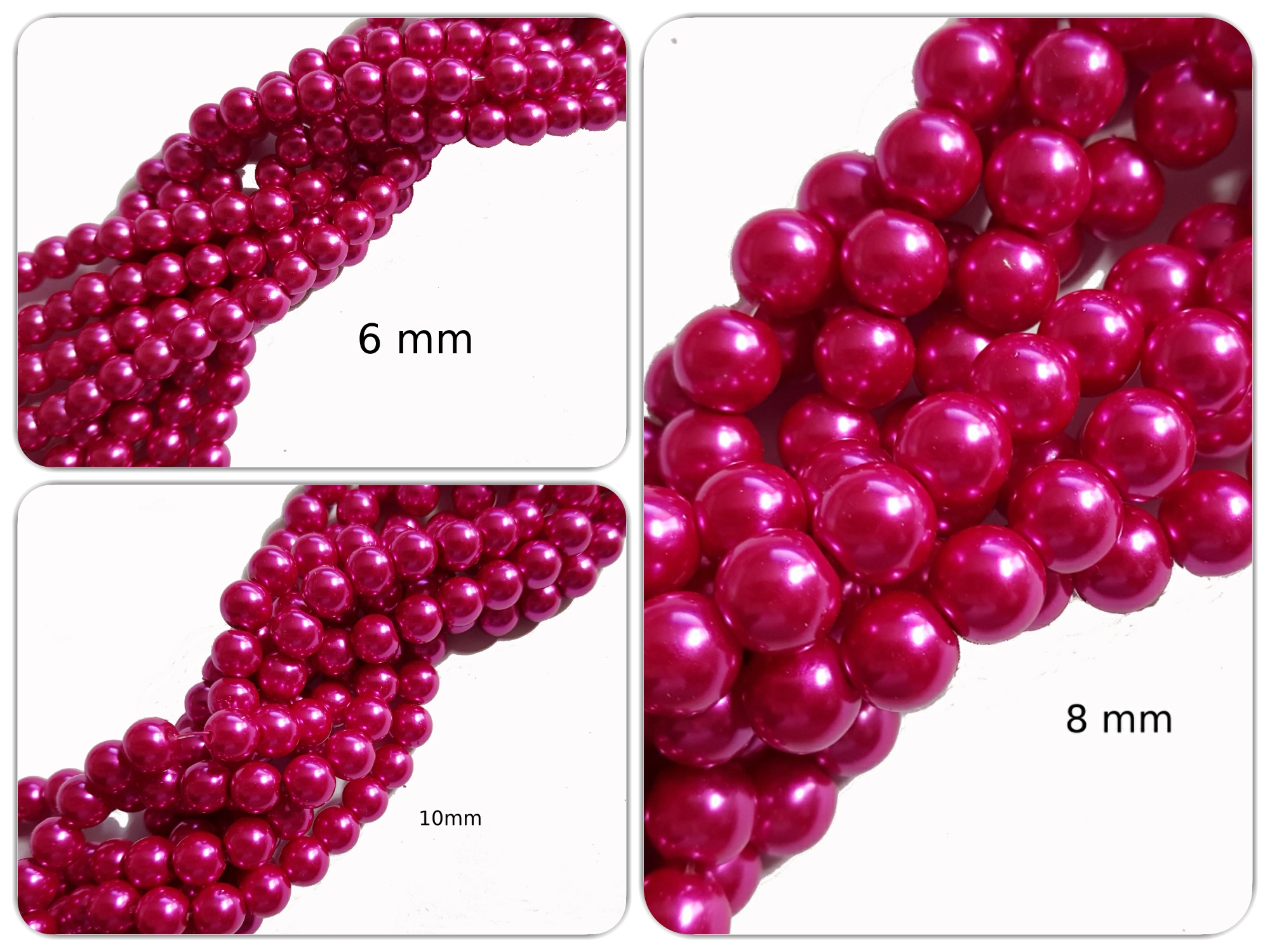 Glaswachsperle Fuchsia, 6, 8 oder 10 mm, Strang