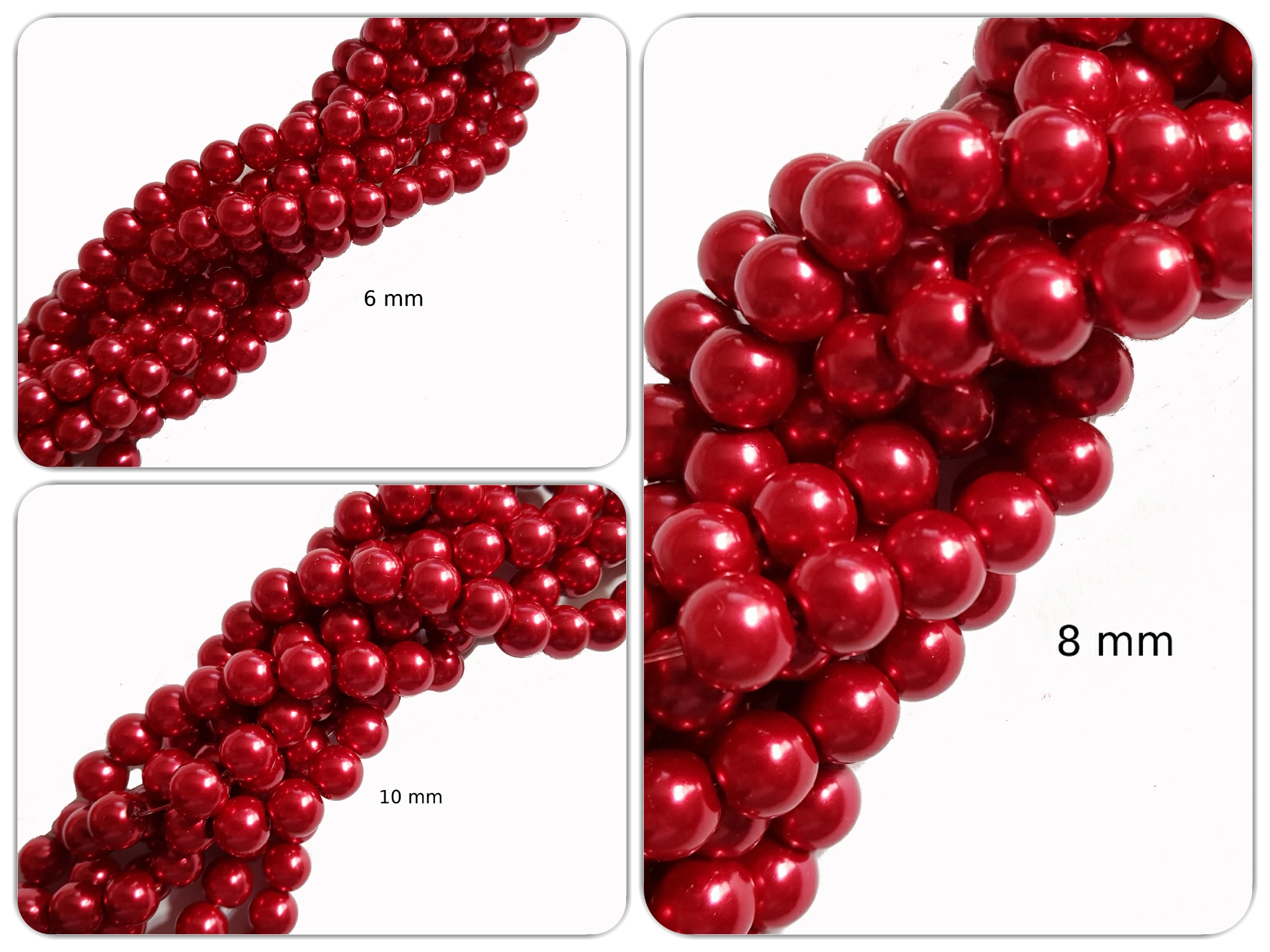 Glaswachsperle Rot, 6, 8 oder 10 mm, Strang