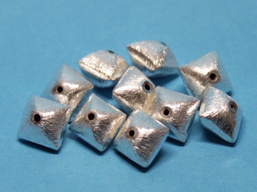 Ein Kissen, ca. 9 x 9 x 8 mm, gebürstet, quer gebohrt, Kupfer versilbert.