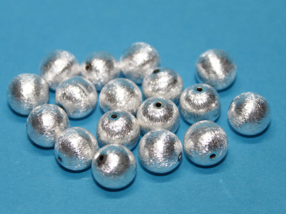 Perle, Kugel, ca. 8 mm, gebürstet, Kupfer versilbert