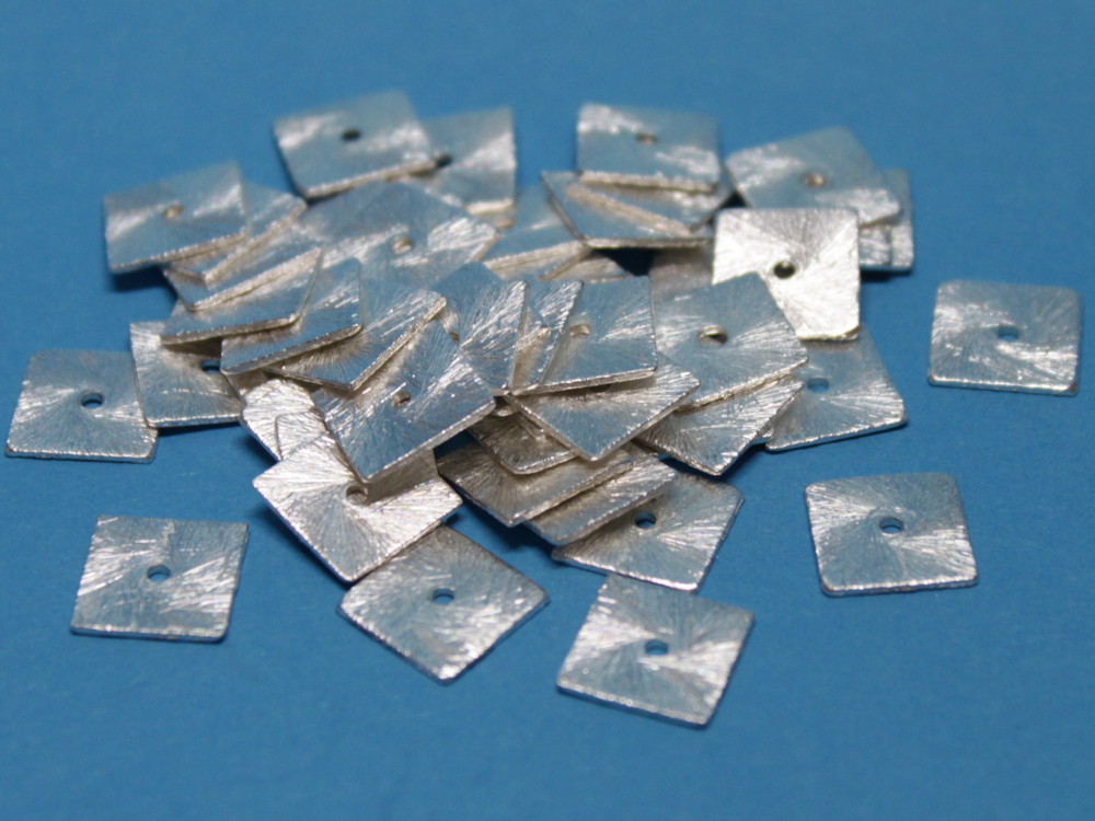 Eine Scheibe, quadratisch, ca. 20 mm, gebürstet, Kupfer versilbert.