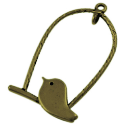 Die Anhängerchen sind ca. 32 x 18 mm groß und antik bronzefarben. Kleine Vögelchen sitzen auf stilisierten Käfigen.