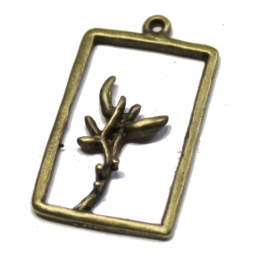 Fünf Anhänger, Charms Blume im Rahmen, ca. 29 x 18 mm, bronzefarben. Metall.