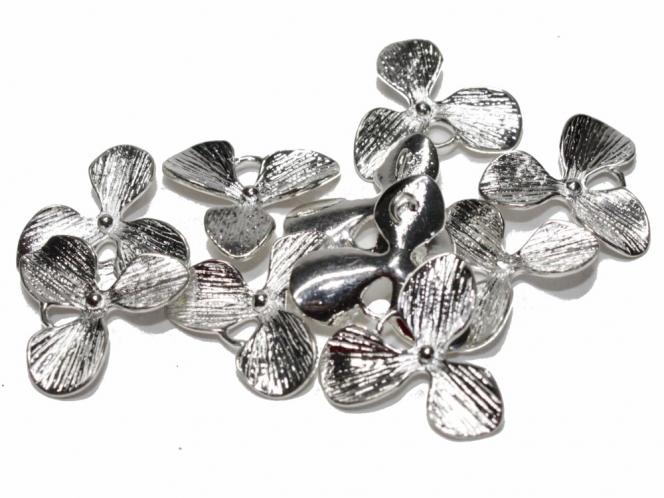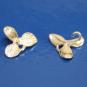 Zwei Chandelier, Zwischenteil "Veilchenblüte", ca. 11 x 10 mm, Kupfer golden plattiert. Zwischen zwei der drei Blütenblätter ist ein kleiner Steg, auf der Rückseite ist eine Öse angebracht, so dass das Blütchen z.B. an einen Ohrhaken montiert und zusätzlich ein weiteres Schmuckteil angehängt werden kann.