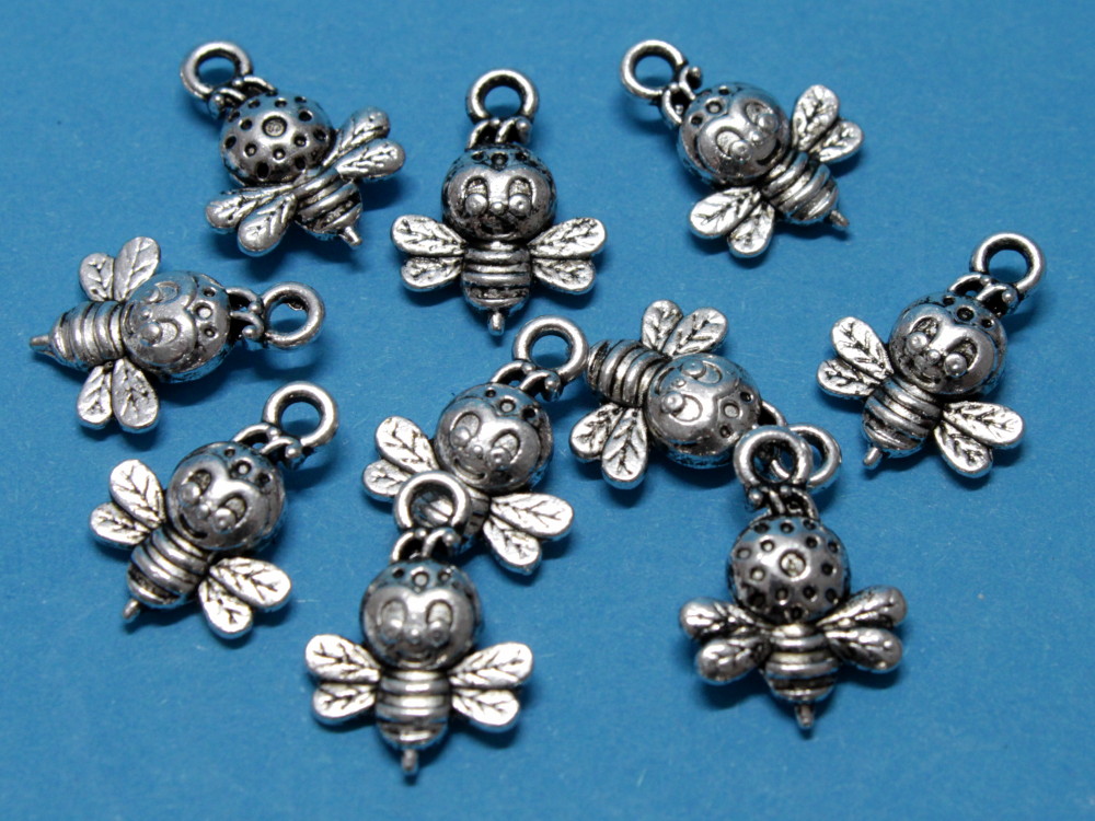 10 Anhänger / Charm Biene, Bienchen, ca. 16x12x4mm mit Öse.Die Beinchen sind dreidimensional gearbeitet und Vorder-und Rückeite zeigen das Bienchen von vorne und hinten.