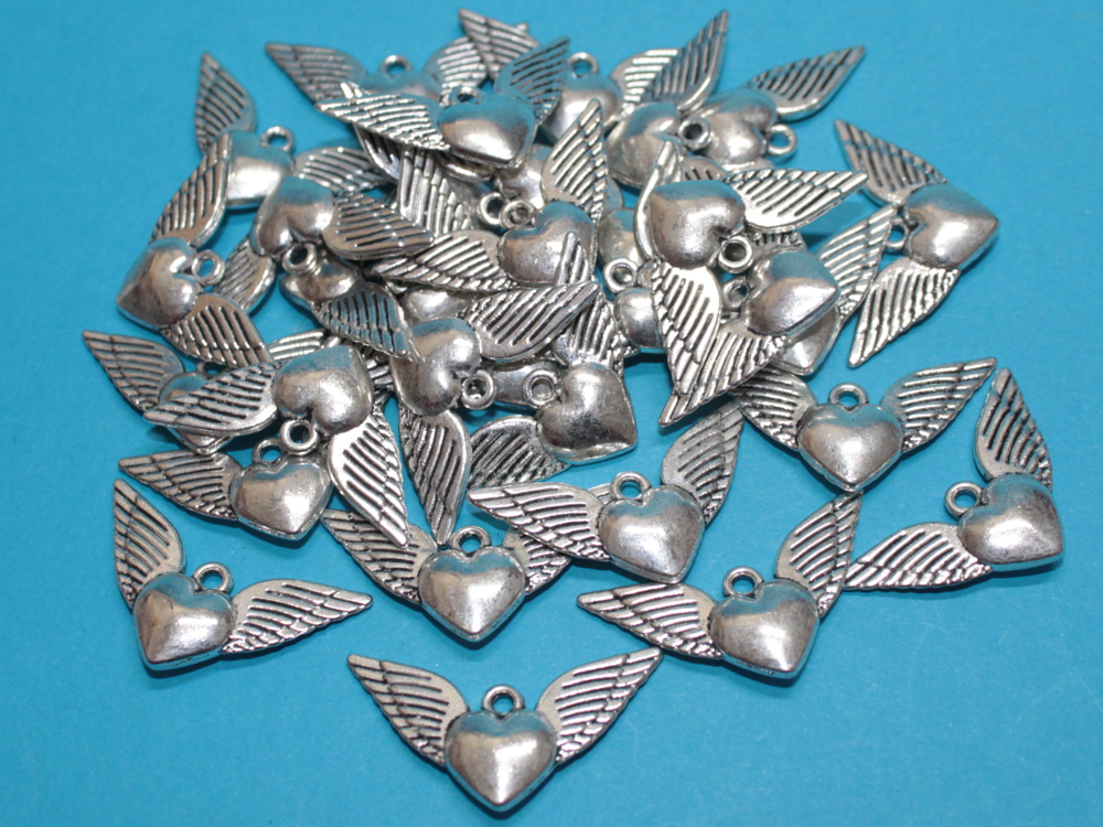 Herz Flügel, ca. 33 mm x 18 mm, Anhänger, 5 Stück
