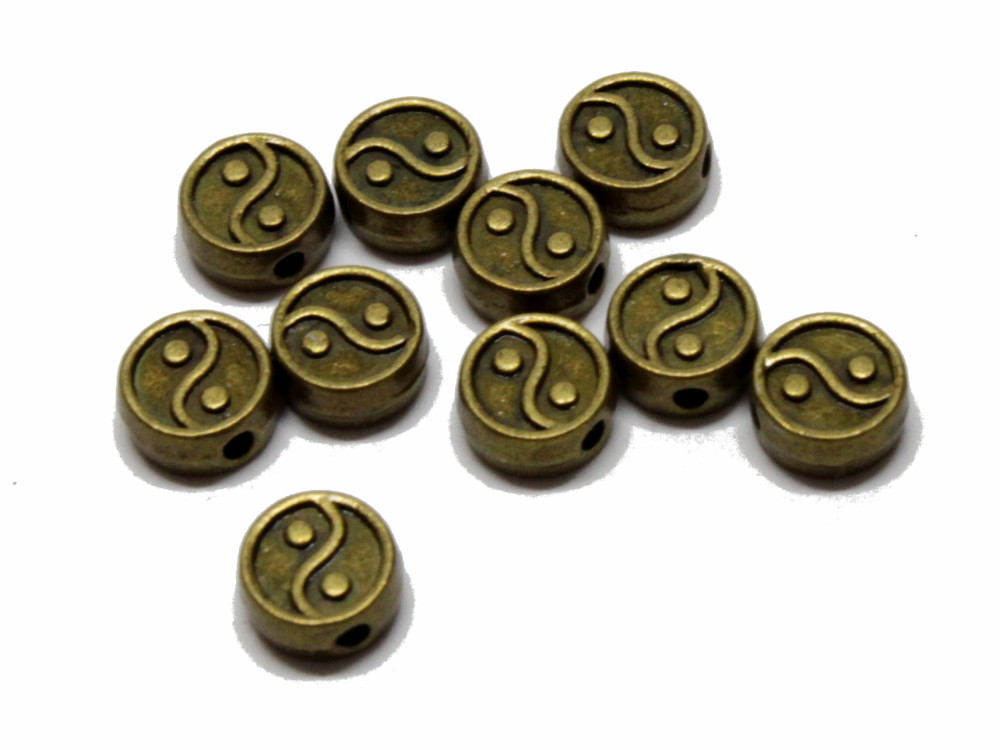 Metallperle Yin Yang, ca. 7 mm, bronzefarben, 20 Stück