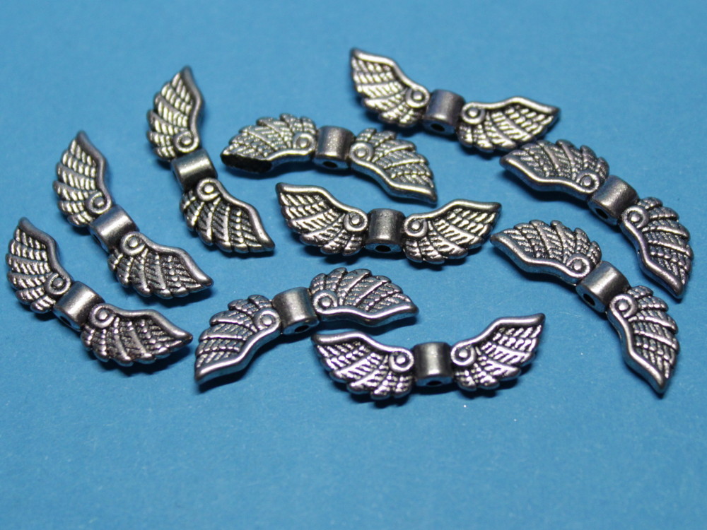 Zehn Flügel, Eulenflügel, Vogelflügel, ausgebreitet, ca. 22 mm x 7 mm, Tibetsilber.