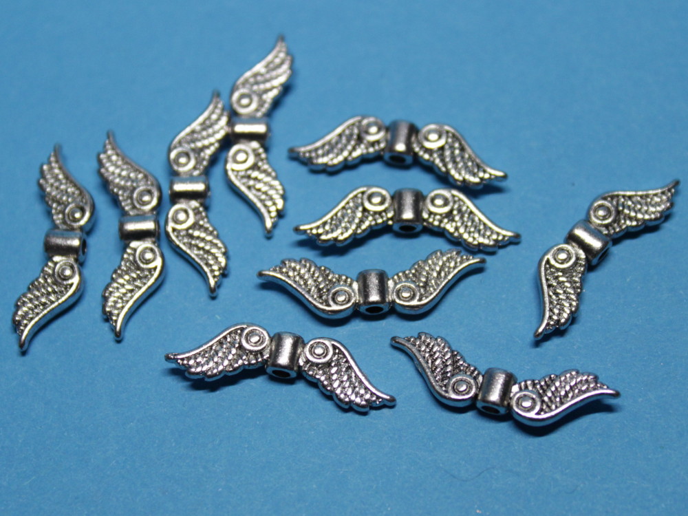 Zehn Flügel, Eulenflügel, Vogelflügel, ca. 22 mm x 7 mm, Tibetsilber.