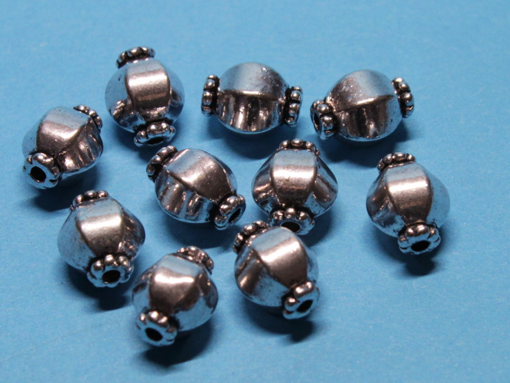 Zehn Metallperlen Lampion, ca. 10 x 6 mm. Teilweise geschwärzt.