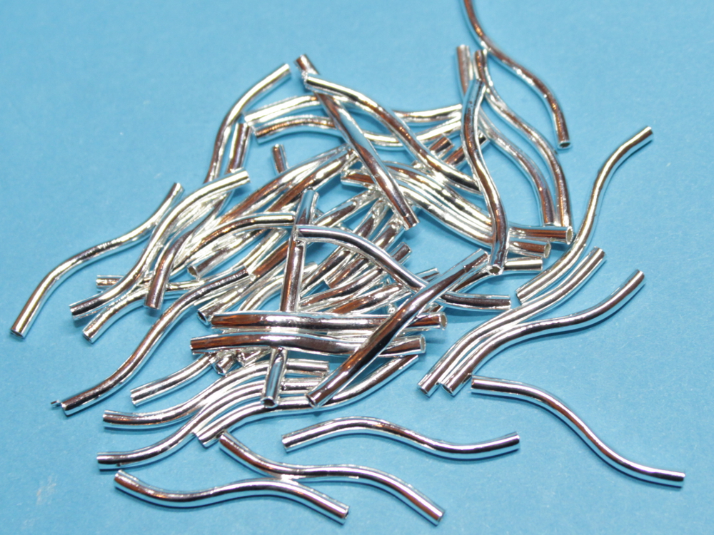 20 Metallröhrchen "Welle", ca. 24 x 3,5 mm, silberfarben.