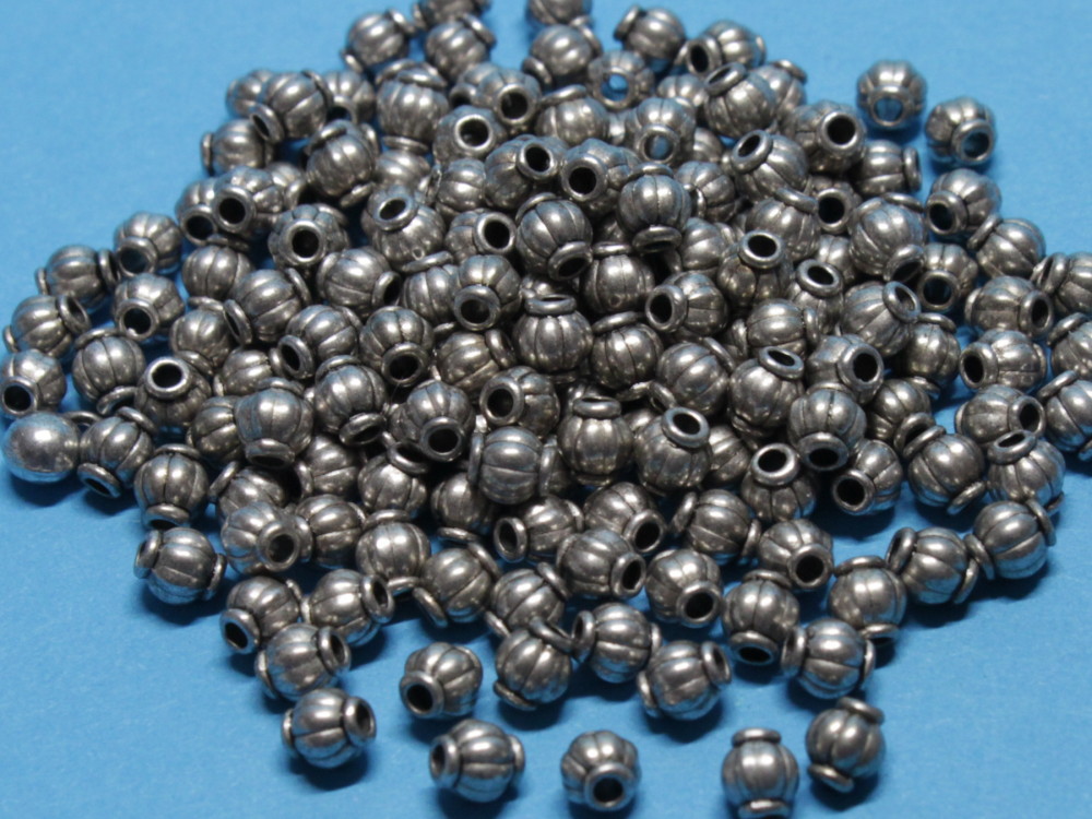 50 Spacer Kürbis, Laterne oder  Vase, ca. 5 x 4 mm, gerieft. Teilweise geschwärzt.