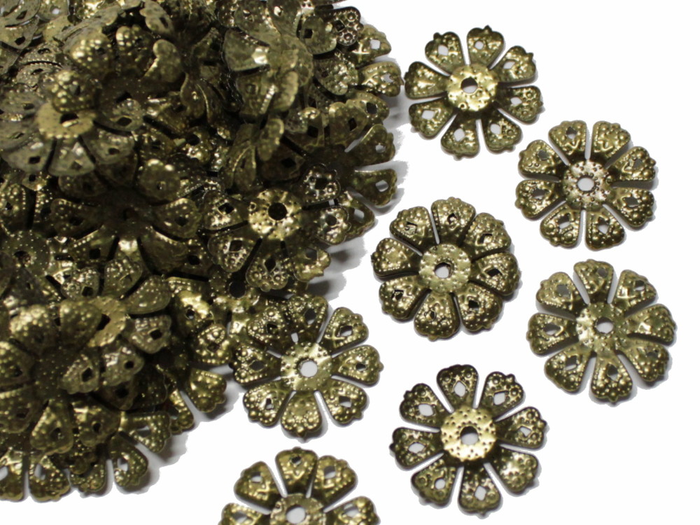 20 großed filigrane Perlenkappen, Perlkappen, ca. 20 mm Durchmesser mit 8 Blütenblättern. Die Kappen sind flexibel und können nach Belieben in Form gebogen werden.