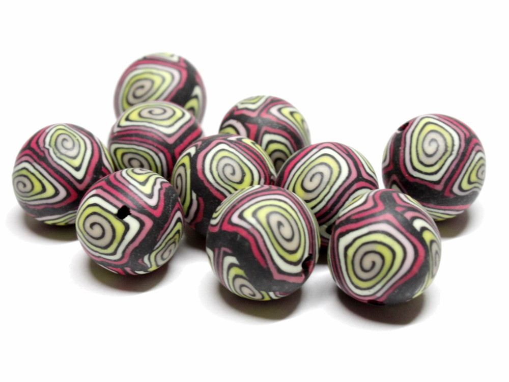 10 Perlen aus Polymer Clay (Fimo) mit Wirbel-Muster. Ca. 12 mm.