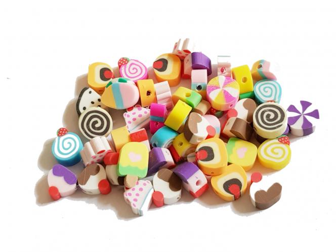Polymer Perlen Kuchen, Süßigkeiten und Eis, ca. 8-12 mm, 50 Stück