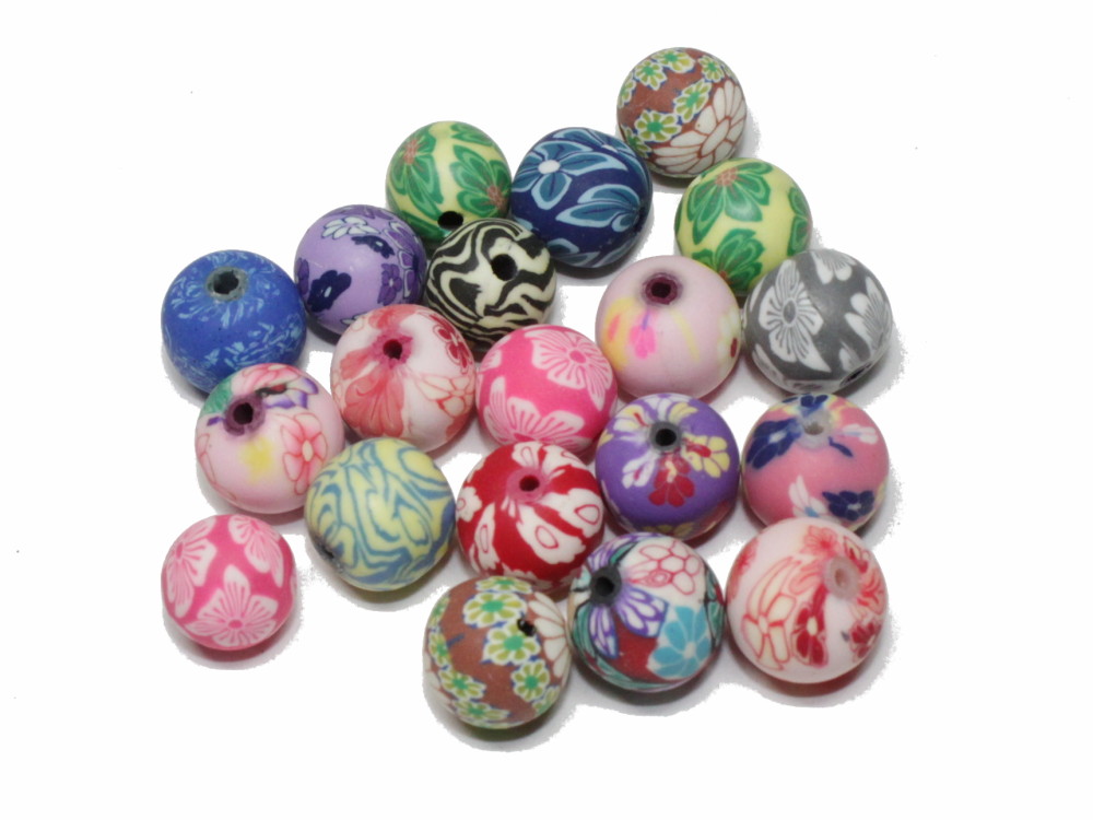 20 Polymer Perlen (Fimo) , ca. 12 mm, bunt gemischt.
