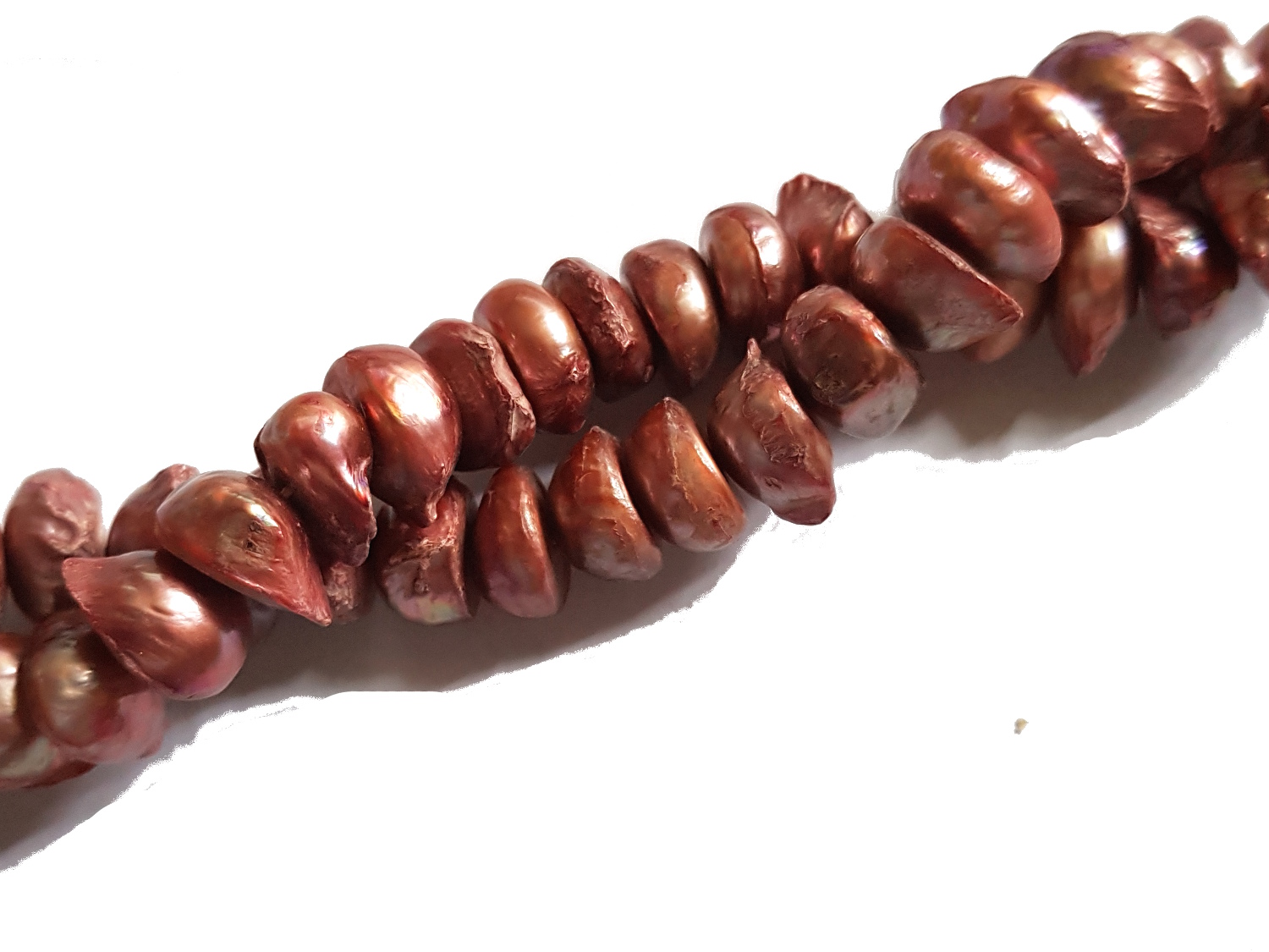 Ein Strang Süßwasser Zuchtperlen, ca. 6 x 9 mm, kupfer(farbbehandelt), quer gebohrt