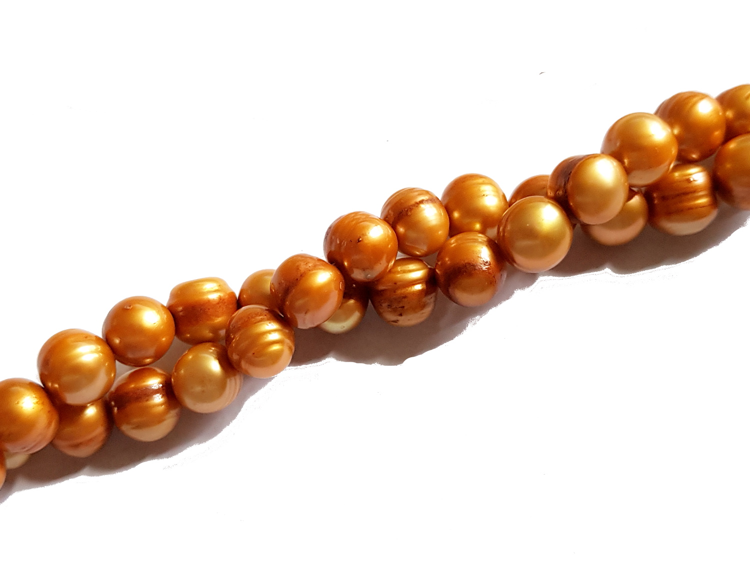 Ein Strang Süßwasser Zuchtperlen, ca. 7 - 9 mm,gold (farbbehandelt), Potato