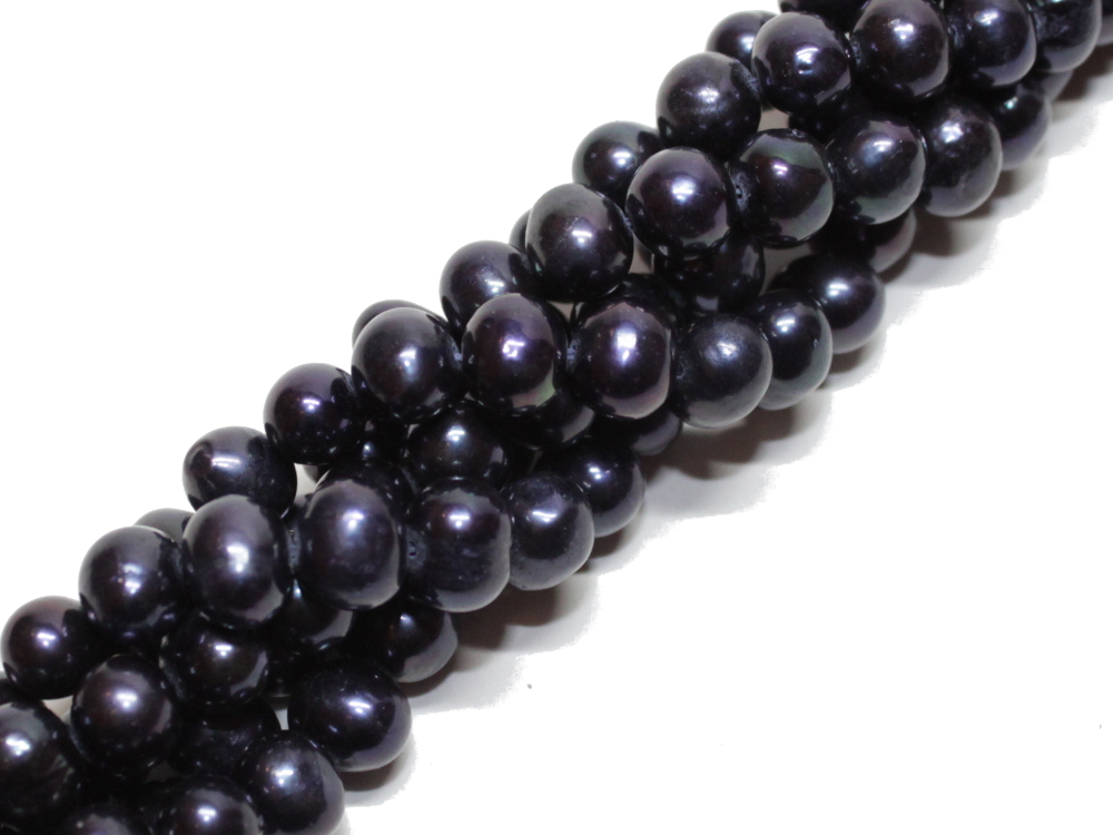 Ein Strang Süßwasser Zuchtperlen, ca. 7 - 8 mm, schwarz, Potato