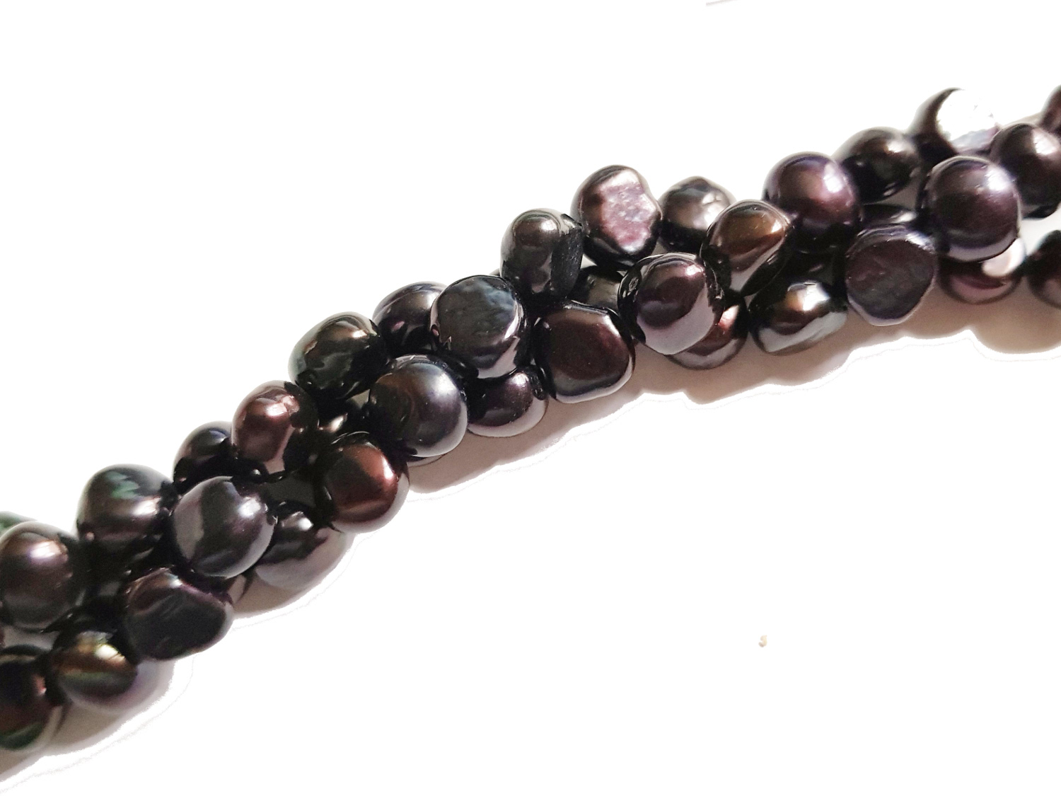 Ein Strang Süßwasser Zuchtperlen, ca. 6-7 mm, schwarz (farbbehandelt), barock
