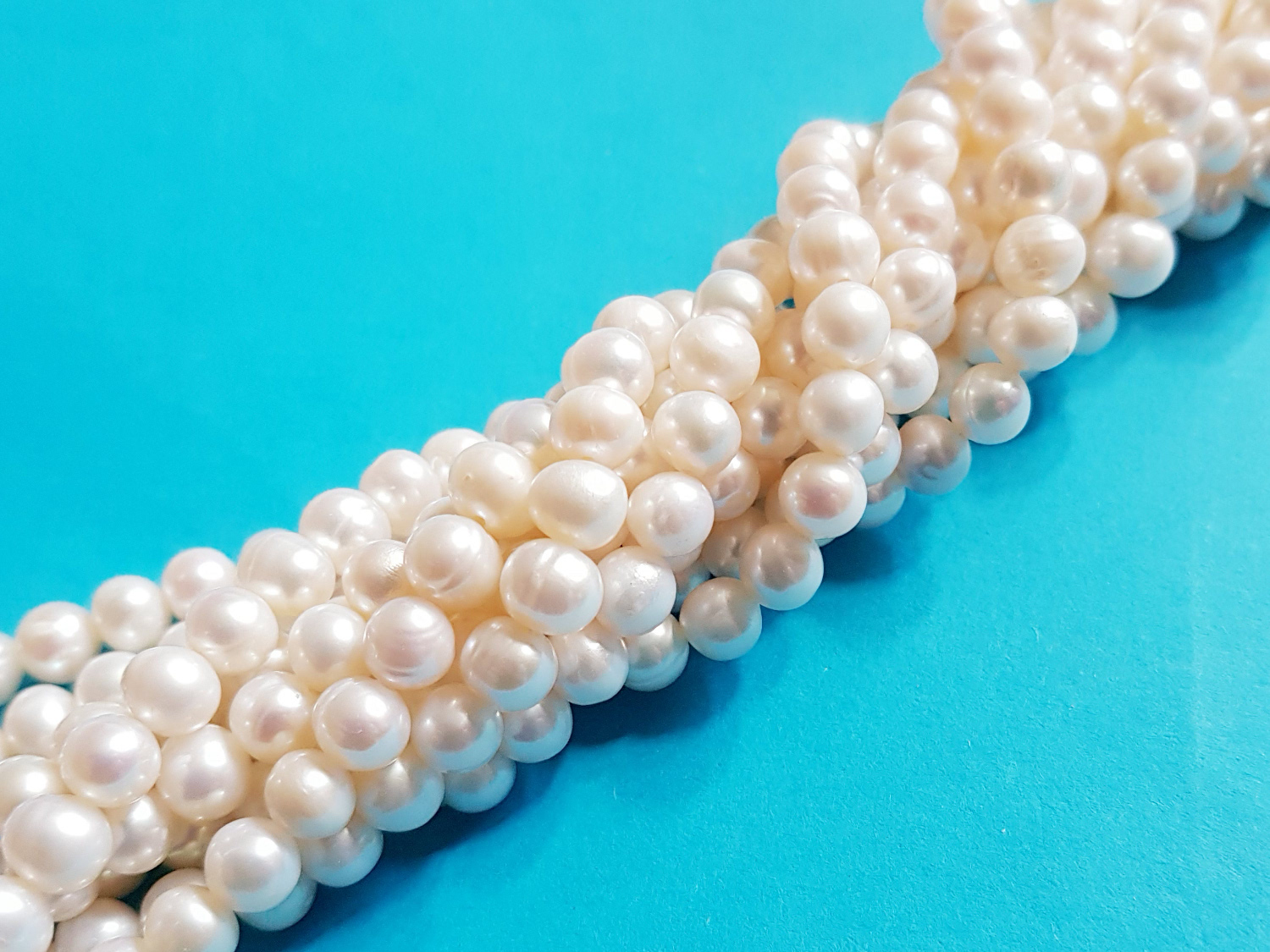 Ein Strang Süßwasser Zuchtperlen, ca. 5-6 mm, weiss, Potato, fast rund